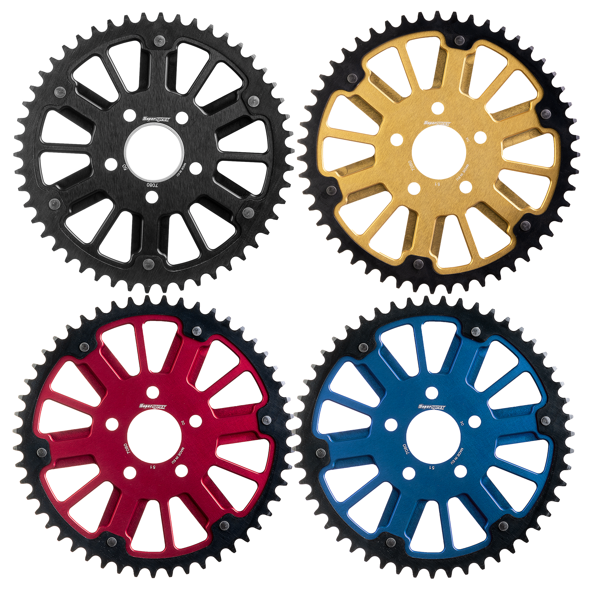 Per Sportster 1986-2022, Big Twin 1984 a oggi (escluso modelli per parastrappi), diametero interno 2.22″, fornite con riduzione per diametero interno di 2″ , 53 denti, Oro