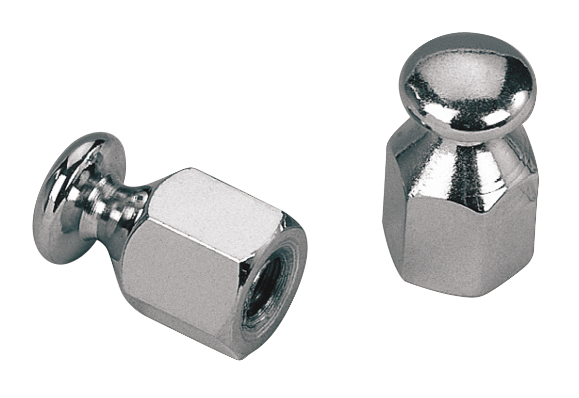 In acciaio ad alto tenore di carbonio, cromati. Possono essere usati per agganciarvi degli elastici o come ancoraggio per una molla, o ancora per sostituire i dadi degli ammortizzatori. In coppia.