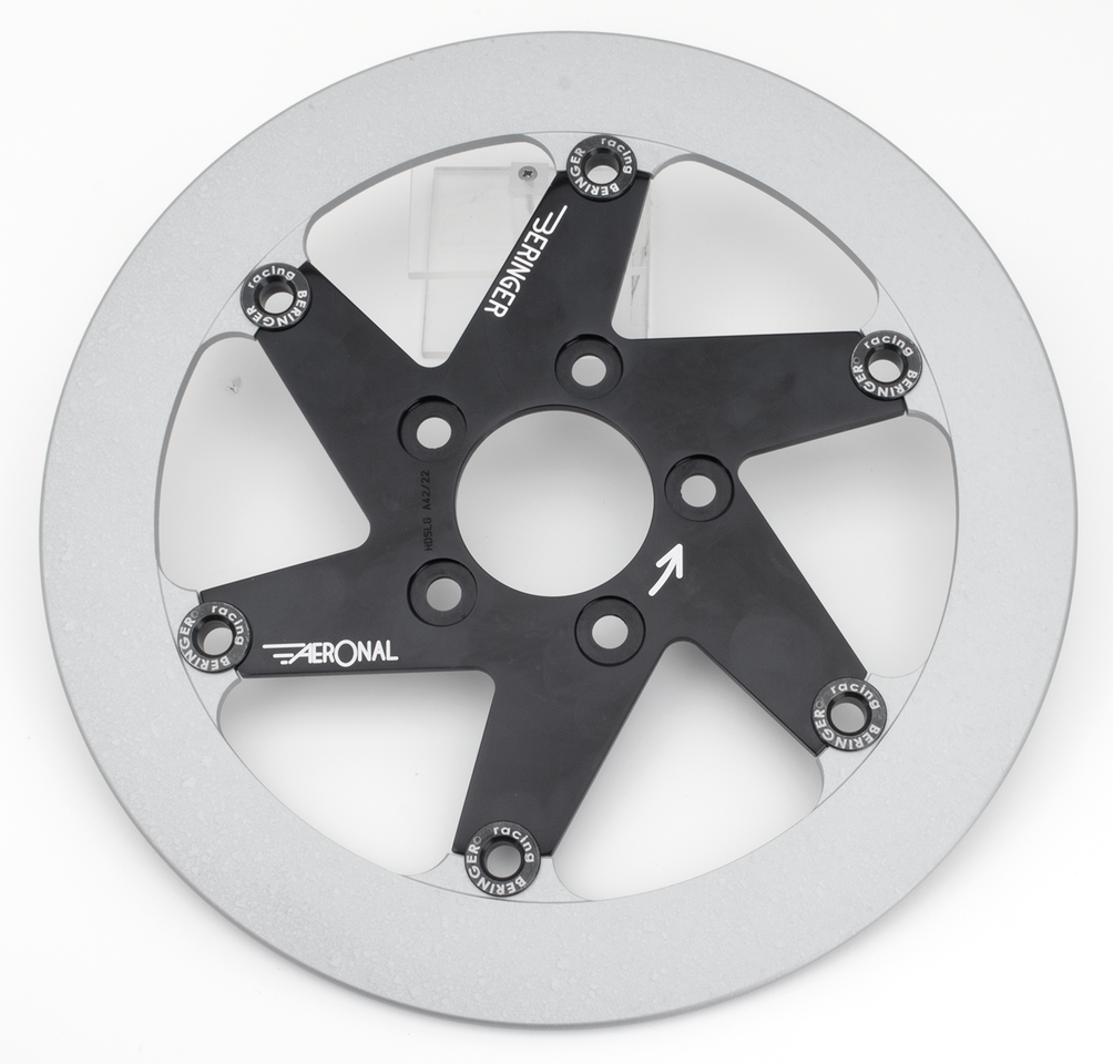 I dischi Beringer usano una fusione di ghisa grigia, materiale universalmente conosciuto per dare le più alte prestazioni sia nell’uso stradale che sportivo. La superficie in ghisa della parte frenante è ricoperta di plasma d’alluminio per prevenire la corrosione e permettere l’uso di pastiglie freno sinterizzate. La potenza frenante aumenta del 40% e l’usura si riduce la minimo. I dischi Beringer’s “Aeronal” sono progettati per applicazioni performanti. Hanno la parte frenante più stretta per ridurre il peso e la parte interna in alluminio aeronautico lavorata a CNC. Le due parti sono unite con 6 nottolini anzichè 12 come nei dischi Classic; questo riduce il peso e l’effetto giroscopico aumentando la manovrabilità della moto. La parte interna è disponibile lucidata, anodizzata nera e cromata. Si raccomanda vivamente l’uso di pastiglie sinterizzate o per prestazioni ancora superiori, pinze freno Beringer. Non compatibili con pinze freno OEM.
