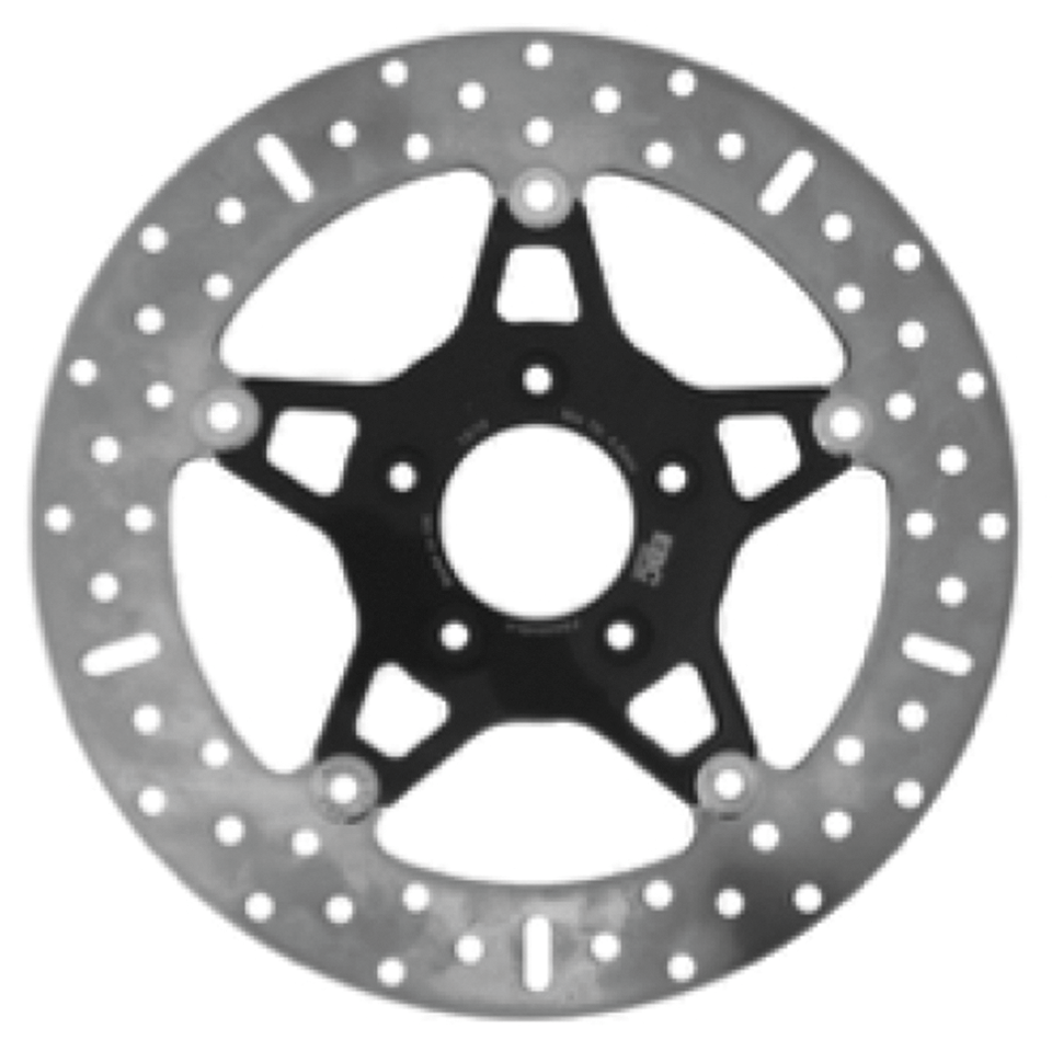 Con banda frenante stretta, anteriore per Sportster 2000-2013, Softail 2000-2014, Dyna 2000-2005 e Touring 2000-2007 con pinze aftermarketIl disco ha un diametro esterno di 11 1/2″, quello interno 2 7/32″ e cinque fori di montaggio a scalino 5/16″, Flottante con 5 nottolini, nero