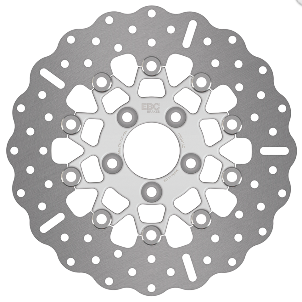 EBC produce una gamma completa di dischi fissi o flottanti per i moderni Big Twin e Sportster. I dischi sono prodotti in UK usando acciaio inox per la pista frenante e acciaio inox lucidato o nero per la parte centrale, dando così una maggiore robustezza. I dischi flottanti sono assemblati usando l’innovativo sistema di nottolini EBC SD System. I dischi flottanti anteriori EBC hanno 5 nottolini di fissaggio mentre i posteriori per una maggiore robustezza ne hanno 10. EBC raccomanda caldamente di sostituire sempre le pastiglie quando sostituite i dischi, perchè delle pastiglie usurate possono causare macchie di calore e strati cristallizati che riducono la frenata. Potete trovare le pastiglie freno EBC in questo catalogo. EBC offre una gamma di dischi fissi o flottanti a 5 razze con profilo tondo o nello stile Contoured. I dischi sono disponibili con banda frenante larga per pinze di serie e banda frenante stretta per pinze freno aftermarket.