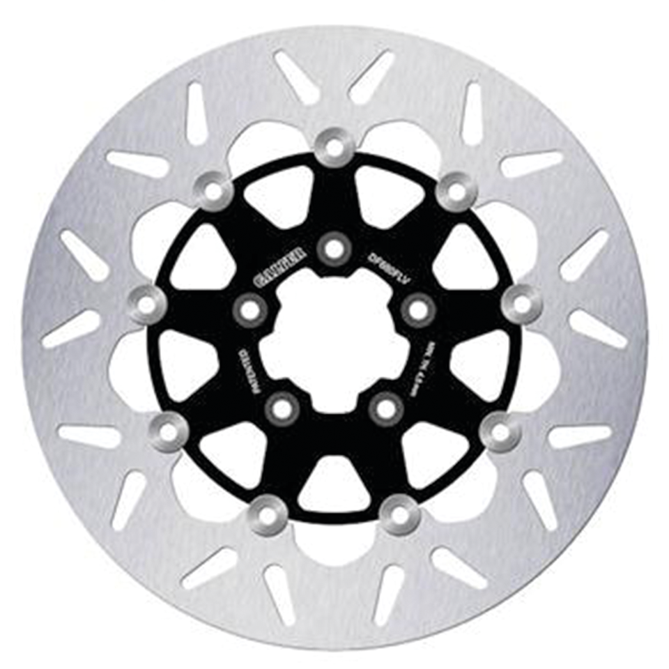 Dischi freno Galfer da utilizzare con pinze di serie e di ricambio all’originale. I dischi completamente flottanti hanno fasce esterne in acciaio inossidabile con centri in acciaio rivestito di nero, e nottolini in acciaio inox. Si raccomanda vivamente di installare nuove pastiglie con un nuovo disco freno.