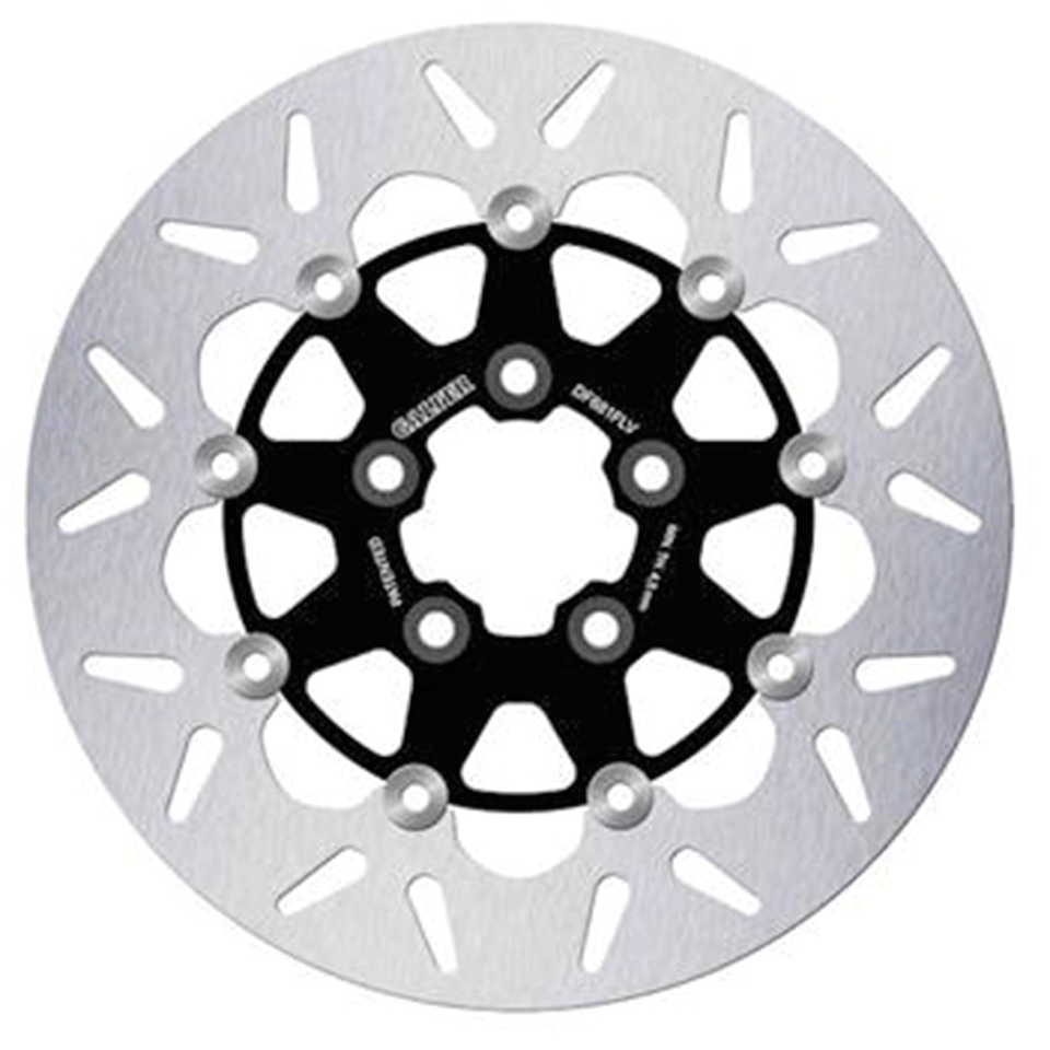 Dischi freno Galfer da utilizzare con pinze di serie e di ricambio all’originale. I dischi completamente flottanti hanno fasce esterne in acciaio inossidabile con centri in acciaio rivestito di nero, e nottolini in acciaio inox. Si raccomanda vivamente di installare nuove pastiglie con un nuovo disco freno.