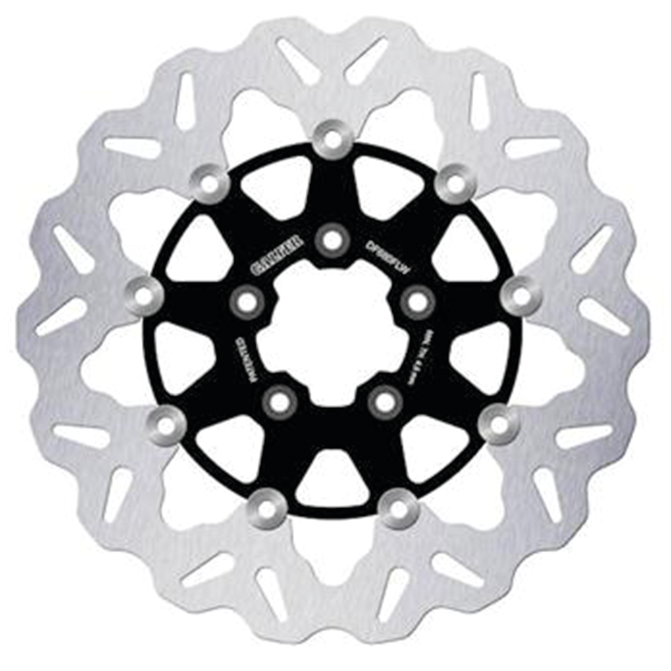 Dischi freno Galfer da utilizzare con pinze di serie e di ricambio all’originale. I dischi completamente flottanti hanno fasce esterne in acciaio inossidabile con centri in acciaio rivestito di nero, e nottolini in acciaio inox. Si raccomanda vivamente di installare nuove pastiglie con un nuovo disco freno.