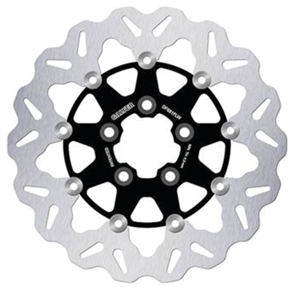 Dischi freno Galfer da utilizzare con pinze di serie e di ricambio all’originale. I dischi completamente flottanti hanno fasce esterne in acciaio inossidabile con centri in acciaio rivestito di nero, e nottolini in acciaio inox. Si raccomanda vivamente di installare nuove pastiglie con un nuovo disco freno.