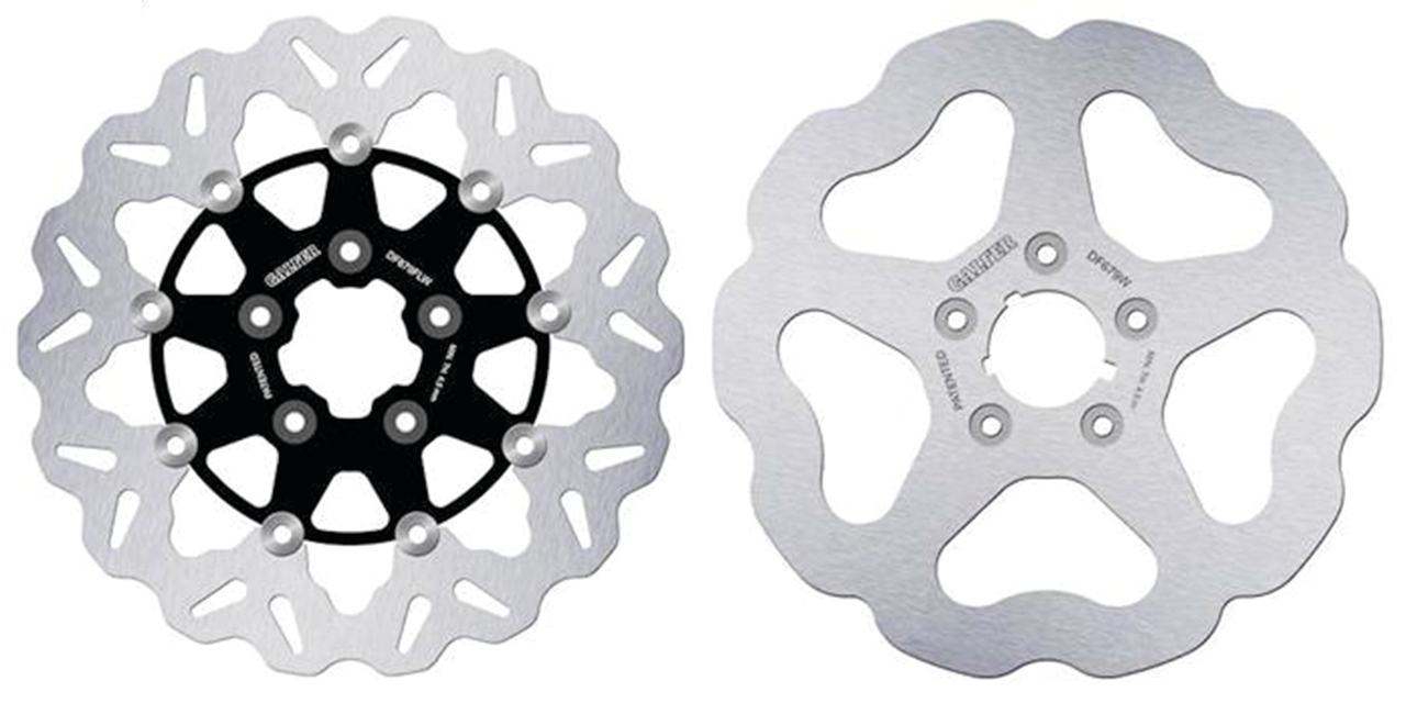 Anteriore per tutte Sportster, Dyna, Softail, Touring & FXR 1984-1999I dischi hanno un diametro esterno di 11 1/2″, diametro interno di 2″ e cinque fori di montaggio scalinati da 5/16″ su una circonferenza di 3 1/4″, Disco flottante Wave