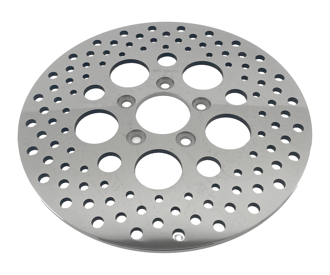 Sono costruiti da una piastra in acciaio A1S1 #420 trattato termicamente al cromo al 12-14% per caratteristiche superiori. I dischi sono compatibili con ogni tipo di pastiglie freni incluse quelle al metallo ed hanno finitura lucidata a specchio. Le forature lungo il disco rendono più efficaci le frenate con tempo umido, riducono il peso ed hanno migliore dispersione di calore.
