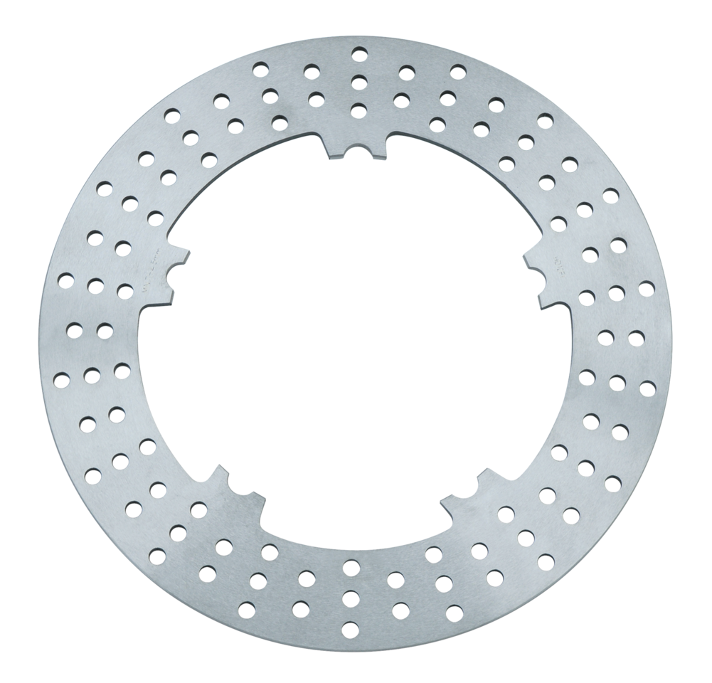 Questi dischi di alta qualità sono di ricambio agli originali senza modifiche. Lavorati di precisione per una maggiore potenza in frenata. I dischi hanno un diametro di 11 1/2″ e venduti singolarmente. Per tutti i V-Rod dal 2002 al 2005 (OEM 44343-01).