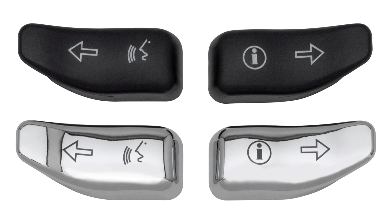 Queste estensioni dei cappucci dei pulsanti delle frecce vi permettono di attivarle senza riposizionare o spostare le vostre mani dalle manopole e miglioreranno la sensibilità indossando i guanti. Il disegno in un pezzo ha un estensione per il pollice che piazza i controlli per la mano destra e sinistra in una posizione comoda. L’estensione del pollice sostituisce il cappuccio del pulsante delle frecce senza ricablare. Venduto in set di estensioni destra e sinistra.