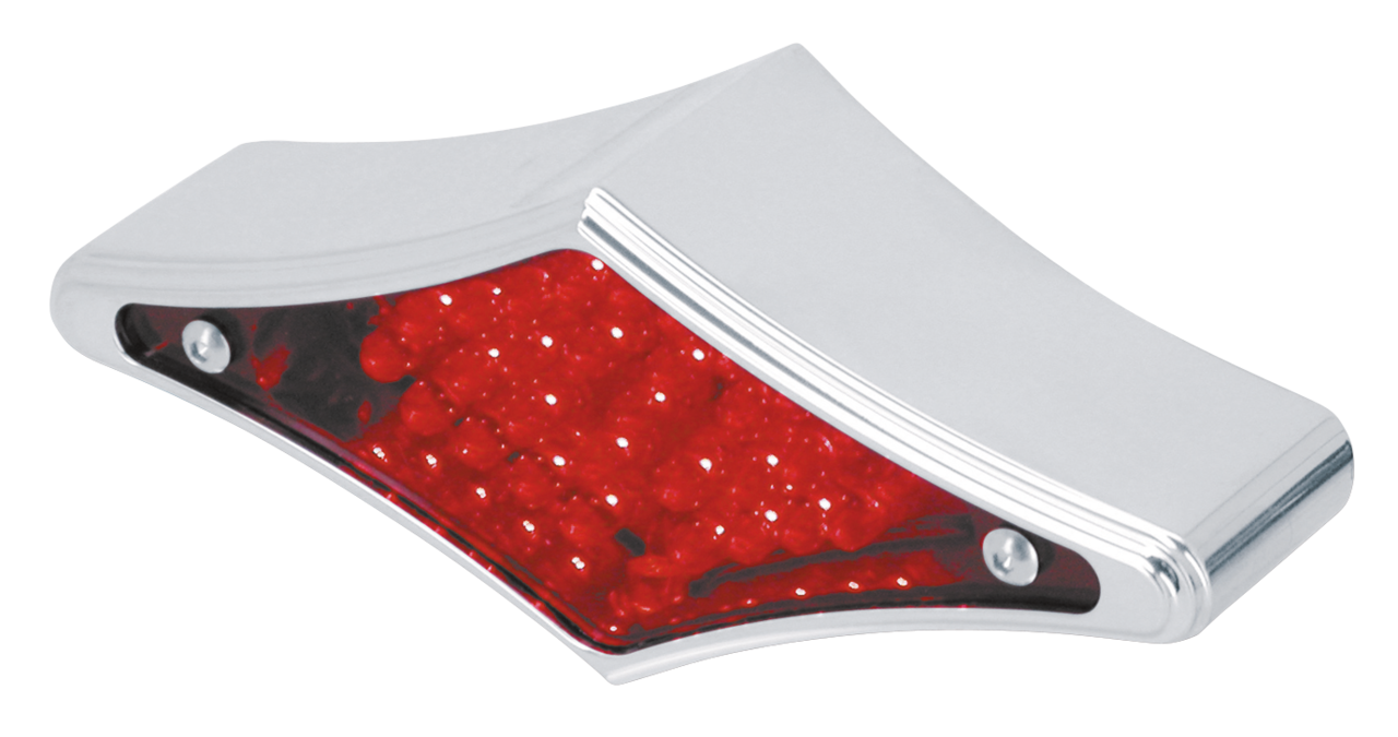 Fanale posteriore a forma di diamante con luce a LED. Fatto in alluminio billet con finitura cromata. Il fanale è fornito precablato per luce posteriore e stop e predisposto per la luce targa.