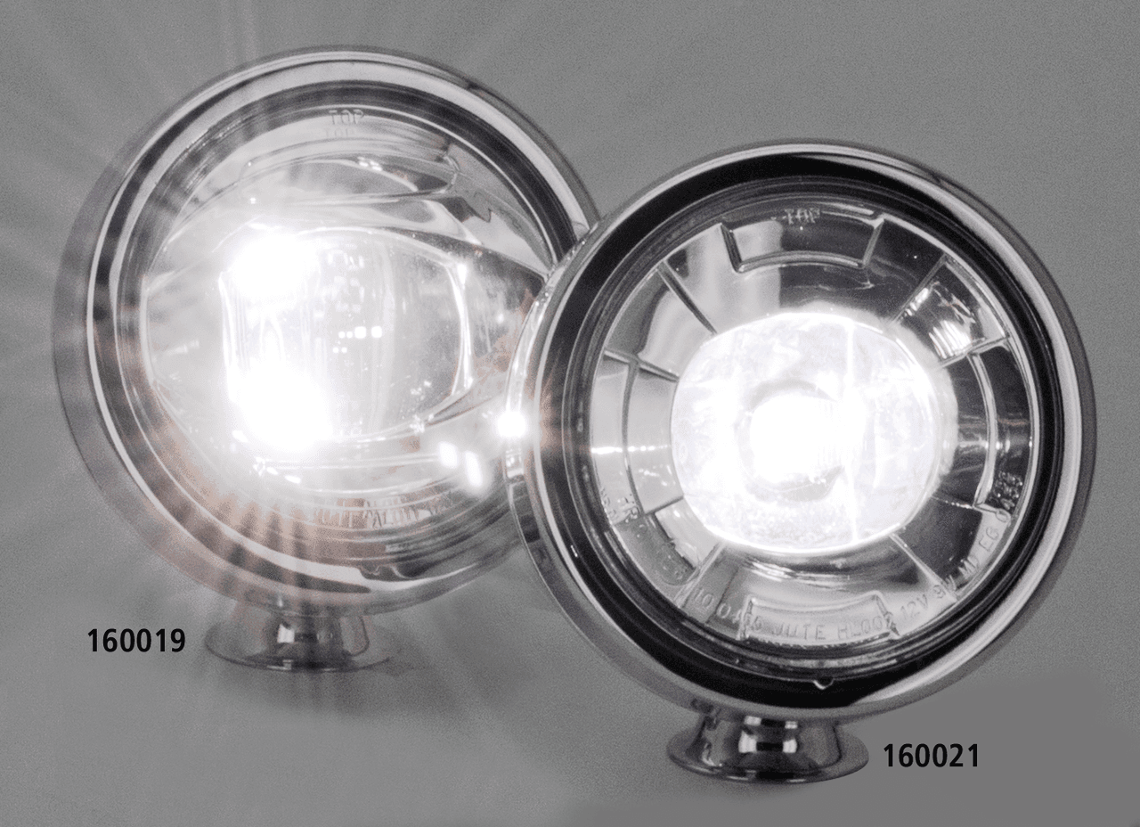 Queste luci a LED hanno la stessa potenza di quelle con le lampadine H3 12 Volt 55 watt ma grazie alla ormai affidabile tecnologia a LED hanno un assorbimento di soli 9 Watt per le lampade standard e di 10 Watt per quelle ad alta uscita. L’alloggiamento ha un diametro di 4 1/4″ (10.8 cm) e una profondità di 3 1/4″ (8.5 cm). Approvate E, hanno un perno inferiore snodabile e sono precablate. Vendute singole.