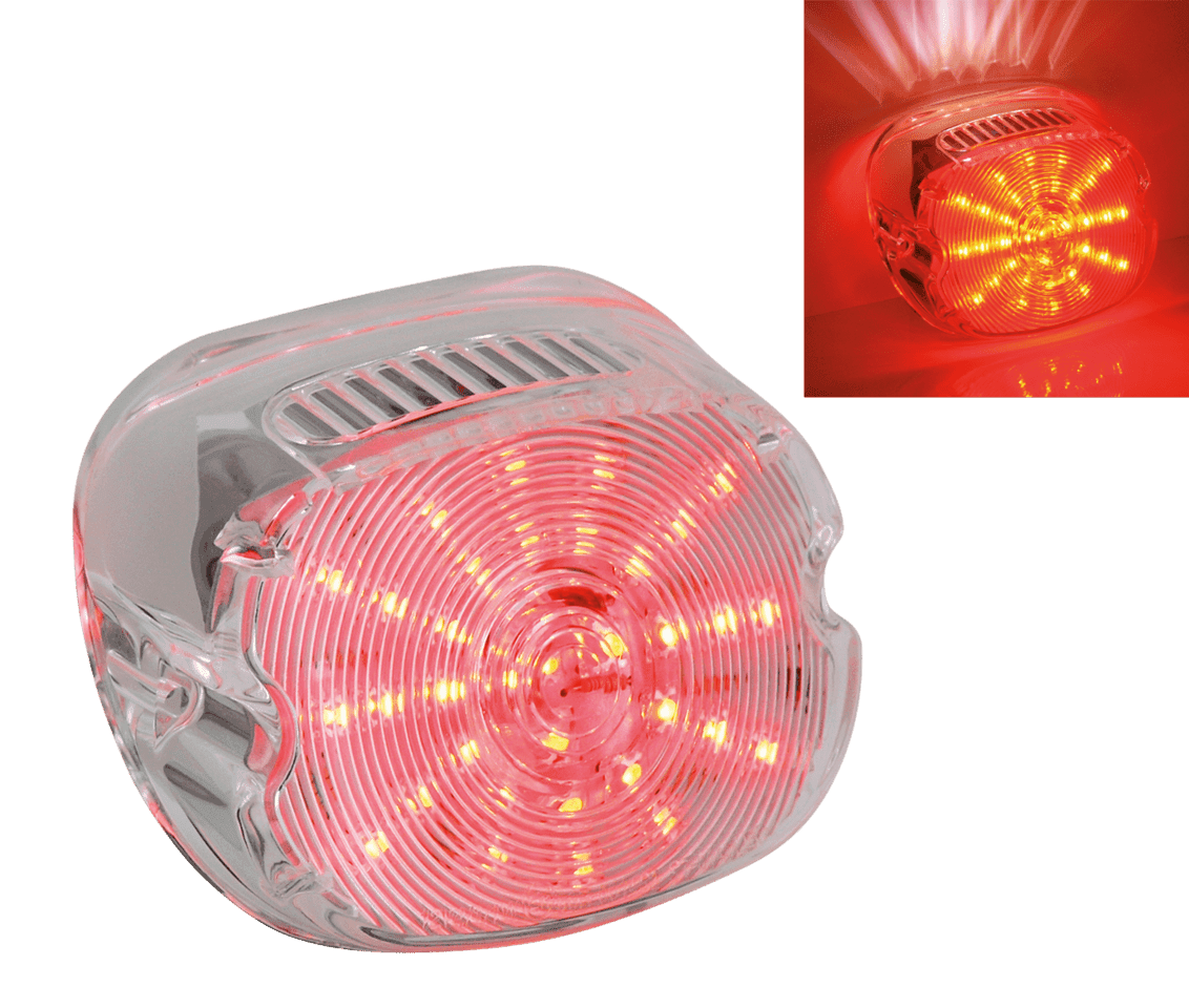 Fanali posteriori custom a basso profilo, il 33% più bassi di quelli originali. Hanno le luce posteriore, stop e illuminazione targa con brillanti LED. Questi fanali sono molto semplici da installare su tutti modelli 1999 a oggi eccetto FXSTD “Deuce” e V-Rod. Disponibili con lenti trasparenti, rosse o fumè, tutte con approvazione “E”.