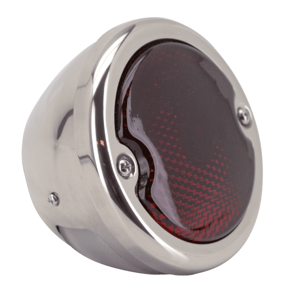 I fanali posteriori No school Choppers sono vere parti Custom di carattere! I fanali sono di acciaio inox lucidato con lampadine a doppio filamento da 12 Volt e sono una riproduzioni dei fanali Ford 1933-1936. Hanno l’approvazione DOT e una lente trasparente sul fondo per illuminare la targa. Per questi fanali abbiamo dei filtri per le lenti. Il filtro da montare sotto le lenti, appena frenate, darà un chiaro messaggio visibile a tutti! Disponibili con staffa per montaggio laterale sul vostro perno ruota o sull’attacco inferiore dell’ammortizzatore. Queste staffe sono costruite in acciaio e hanno una finitura nera a polvere e il portatarga cromato completo di tutta la minuteria per il montaggio. Il portatarga ha le misure americane di 7″x4″ (17.8×10 cm).
