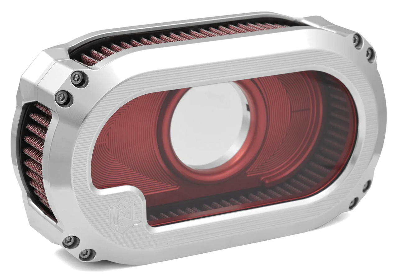 Per Touring 107CI e 114CI 2017 a oggi, Touring 117CI 2017-2023, tutti Trike 2017 a oggi e tutti Softail 2018-2024, Filtro aria, finitura a macchina con piastra di fondo rossa