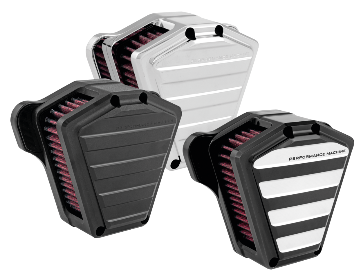 I filtri aria Drive sono stati ispirati a Performance Machine nel suo ingegno alla customizzazione. Queste parti complementano l’angolatura dei cilindri e si abbinano perfettamente agli altri accessori della serie Drive di PM. Disponibili nella versione cromata, Contrast Cut nero con tagli in alluminio grezzo, o la particolqare finitura di PM con due toni di nero Black Ops che si abbina perfettamente alla finitura neri dei motori Harley di serie.