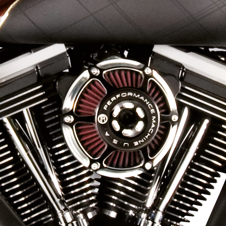 I filtri aria Performance Machine MAX HP non sono solamente degli accessori carini ma senza sostanza. La nuova aggiunta alla linea PM di filtri aria presenta una innovativa forma conica.che lascia molto spazio al ginocchio, un cono interno per ottimizzare il flusso dell’aria e un filtro aria lavabile ad alto flusso. Il design in leggerisimo alluminio, tubi di sfiati interni in gomma per eliminare trafilaggi e una semplicissima installazione supportano il fantastico look del MAX HP. Costruiti in USA e disponibili nella versione cromata, Contrast Cut nero con tagli in alluminio grezzo o la particolare finitura di PM con due toni di nero Black Ops che si abbina perfettamente alla finitura nera dei motori Harley di serie.