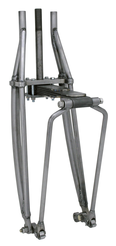 Kiwi è una compagnia con sede negli USA e dichiara che le loro forcelle a balestra sono le migliori mai costruite per motociclette. La costruzione della forcella avviene nella loro sede per seguire il processo fino alla fine e mantenere alto il livello qualitativo, usando delle dime fino all’ultima saldatura. In questo modo le parti rimangono rigide e nella posizione corretta durante tutto il processo. Ci sono altre forcelle a balestra sul mercato ma la maggior parte di queste imitazioni sono saldate a mano e senza dima e di conseguenza poco affidabili. Le forcelle Kiwi sono costruite con tubi 1020 DOM per la massima robustezza. Tutte le altre parti sono lavorate a CNC per avere la massima qualità e precisione. Le saldature sono eseguite a TIG per una profondità e un aspetto migliore. Accettano cerchi con diametri da 16″ fino a 23″. Queste forcelle sono lunghe 20 1/2″ (52 cm) misurate dalla parte superiore della piastra inferiore fino al centro del perno ruota e lavoreranno col 95% delle applicazioni. Il diametro del perno di sterzo è 1″. La forcella ha il classico set-up con il disco freno a destra. L’uso di un mozzo stretto è altamente raccomandato per una facilità di installazione.