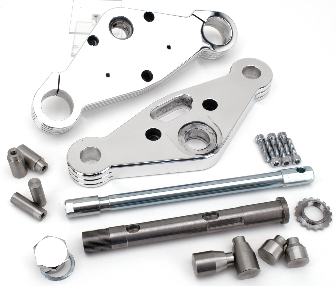 Ton ha messo le Fat Bubba a dieta, risultato le Naked Bubba! Come le Fat Bubba originali hanno le piastre di grosso spessore, i foderi forcella di grosso diametro ed il perno ruota anteriore a scomparsa. Piastre e foderi sono in alluminio billet e hanno una finitura lucidate o anodizzate nere. Piastre, e foderi sono costruite in alluminio billet ed hanno una finitura a specchio. La piastra superiore è spessa 1 1/8″ (29mm), quella inferiore 1 5/16″ (34mm). I foderi hanno l’impressionante diametro di 2 3/8″ (60mm) e prevedono i supporti parafango e i supporti per due pinze freno. I foderi sono terminati con un parapolvere in alluminio billet. Le piastre di supporto per le pinze OEM o aftermarket sono disponibili, ma vanno ordinate separatamente. Altre piastre di supporto vanno costruite appositamente. Il perno anteriore è a scomparsa per un look ultra filante. Il perno anteriore è a scomparsa per un look ultra filante. Disponibile nelle lunghezze +2″, +3″, +4″, +6″, +8″, +12″, +14″ e +16″ over stock rispetto alle forcelle FL, e con inclinazione delle piastre di 0, 3 e 6 gradi. Queste forcelle sono fornite di 3 differenti fermi forcelle per adattarsi a qualsiasi tipo di telaio stock o aftermarket. Una confezione di olio forcella è incluso in ogni set forcella.