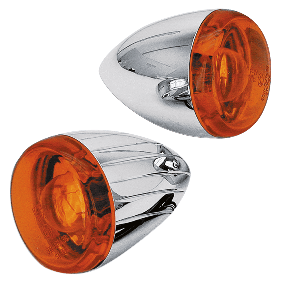 Le nostre ultime frecce, disponibili lisce o scavate. Entrambe le versioni sono cablate e complete di bulbo da 12 Volt, 21 Watt con lenti acriliche. Misurano 2 3/8″ (60mm) di circonferenza e sono lunghe 3 3/8″ (86mm). Facili da montare con attacco da 5 16″ UNC. Sono approvate EEC. Vendute sinolarmente.