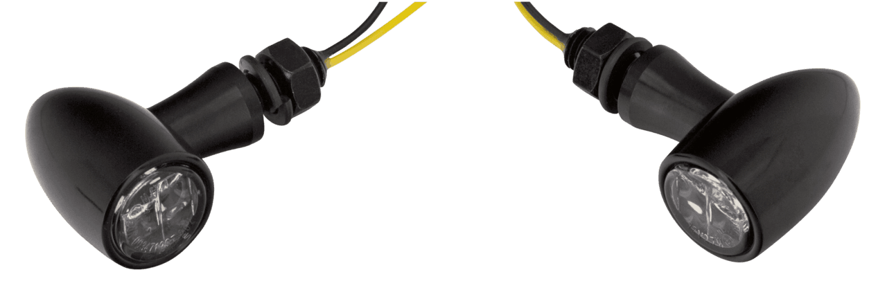 Luci in alluminio billet con attacco M8 soni soli 2 cm di diametro e 3,7 cm di lunghezza e larghezza. Disponibili come frecce o con la tripla funzione luce/stop/frecce, approvate E. Vendute in coppia