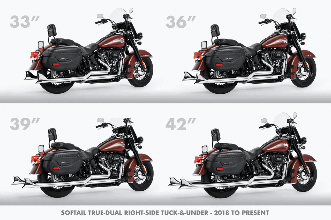 2018-2020 SoftailMilwaukee Eight, Versioni omologate CE, Euro 4, 107CIRichiede adattatori quando installato su FLHC & FLHCS Heritage, FLSB Sport Glide et FXLRST Low Rider ST con supporti borseL’uso 2-Up richiede il kit di riposizionamento delle pedane passeggero, Cromato, 33″ terminale
