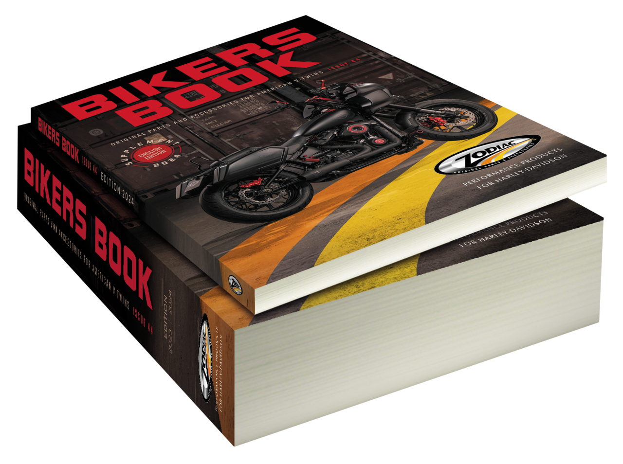 Zodiac Bikers Book è il miglior catalogo aftermarket mai realizzato. L’edizione 2025-2026 e contiene più di 40.000 parti e accessori ed è uno dei più grossi cataloghi aftermarket disponibili per Harley-Davidson e V-Twin Americani. Il catalogo è disponibile in Inglese, Tedesco, Francese, Italiano e Spagnolo. Noi continuiamo a espandere e correggere la nostra linea di prodotti per incontrare la richiesta attuale dei possessori di Harley senza dimenticare però i possessori di Buell, Indian e Victory.