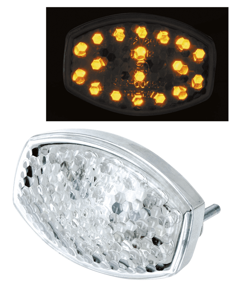 Alloggiamento cromato in fusione e forniti di due perni filettati per semplificarne l’installazione in molte superfici piane. Precablati con LED ambra e lenti trasparenti approvate EU. Misurano 1 3/4″ di altezza, 2 1/2″ di larghezza e 3/4″ di profondità. Venduti in coppia.