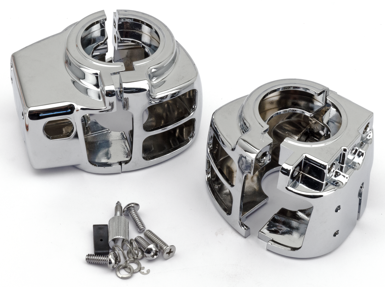 Riproduzione degli alloggiamenti pulsanti originali. Accettano interruttori OEM o aftermarket. senza cablare. Zodiac ha quattro versioni disponibili, vecchio stile, nuovo stile con fori extra sull’alloggiamento sinistro per accogliere il sistema di blocco della frizione introdotto nei modelli 2007, un kit per i modelli con i controlli radio e cruise control, Softail 2011 a oggi e Dyna style 2012 a oggi.