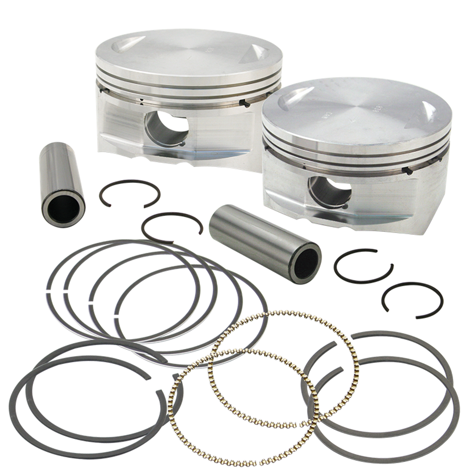 Kit 106CI (1737CC) per Twin Cam 2007-2017I kit sono forniti completi di pistoni forgiati con cupola da 3CC che danno una compressione finale di 10:1 con le testate di serie, Kit pistoni di ricambio, maggiorati .010″