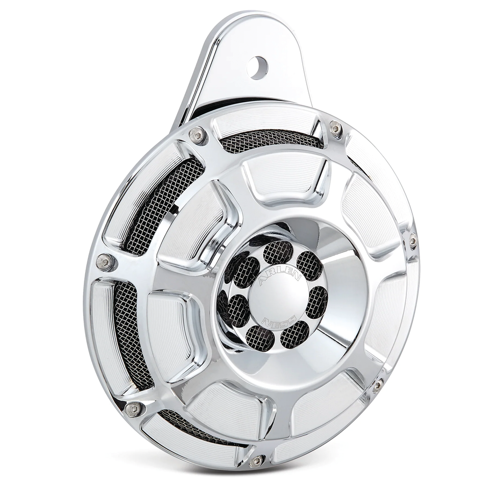 Kit clacson completi in alluminio billet forgiato e rete metallica in acciaio inox. Grande stile ma dalle dimensioni compatte per dare più spazio alla gamba. Disponibili in 4 modelli diversi con finitura nera o cromata, con staffe in acciaio per Sportster e staffe in acciaio per il montaggio universale ottime per l’uso su Custom, Softail e Dyna. Questi potenti clacson sono facili da installare e hanno una potenza sonora di 110dB rendendovi udibili da chiunque quando è necessario. Grande look se abbinati ai kit filtri aria Inverted di Arlen Ness.