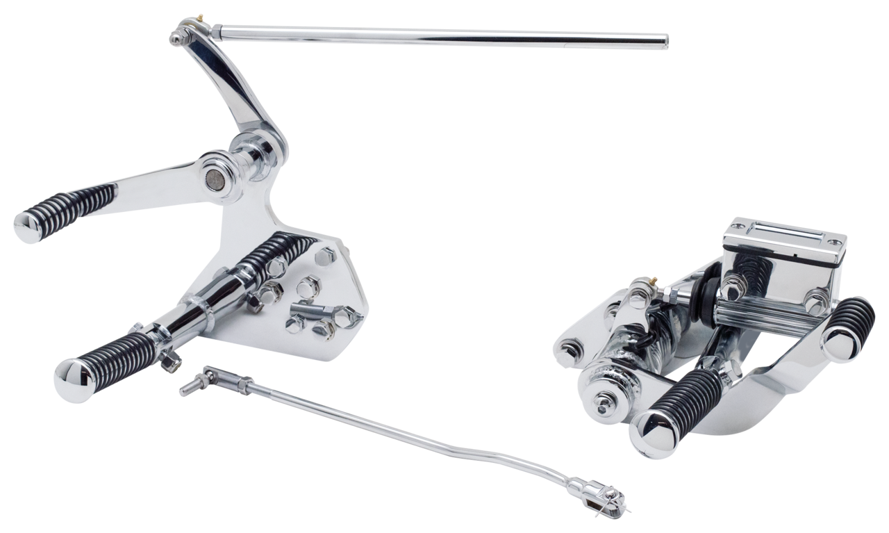 Kit completo che include la pompa freno da 3/4″ tipo Kelsey-Hayes o e tutta la bulloneria di montaggio. Il pedale del freno e la leva del cambio sono dotati di bronzine per un’azione più fluida. Disponibili in kit completo con pedane e pedale del cambio con O-ring o in kit senza pedane. Il kit senza pedane ti permette di montare le pedane che più ti piacciono o che si intonano a quelle del passeggero. I supporti delle pedane hanno un attacco femmina che accetta la maggior parte delle pedane con attacco maschio, la leva del cambio accetta tutti i pedali del cambio. La linea del frenon non è inclusa.