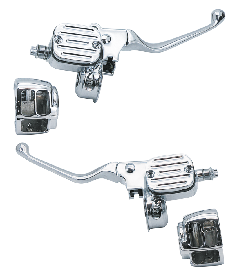 Restyling dei comandi OEM come quelli usati su Big Twin e Sportster dal 1996 al 2003. Entrambe le pompe hanno linee più fluenti integrandosi meglio con gli alloggiamenti dei pulsanti che sono una riproduzione cromata di quelli originali. Accettano pulsanti OEM o aftermarket. La pompa freno anteriore ha un alesaggio di 9/16″ per l’uso con disco singolo.