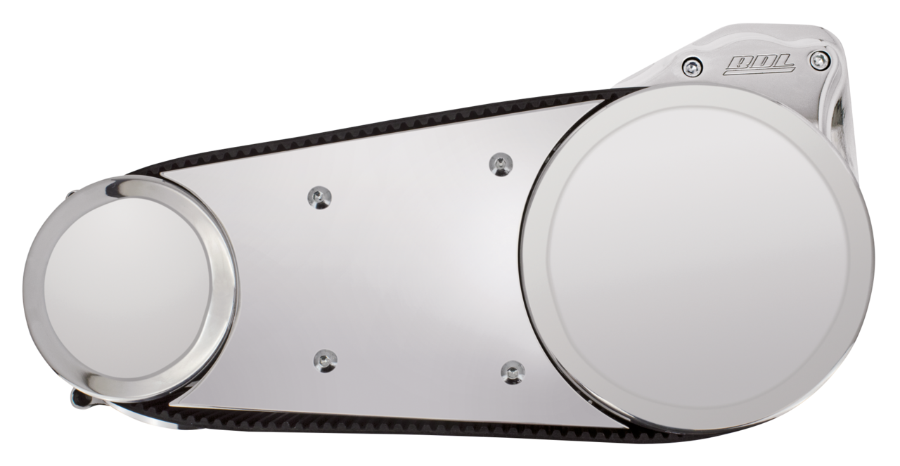 Questi kit includono una unità a cinghia scoperta da 3″ con piatto di pressione lucidato, doppio cuscinetto sigillato dell’albero principale, una piastra laterale in alluminio lucidato, un copri puleggia e una frizione completa BDL “Competitor Clutch” con dischi in Kevlar. Il kit include anche una massiccia piastra di supporto motore in alluminio billet in un pezzo unico. La piastra di supporto bloccherà la trasmissione ed il motore insieme come è necessario quando si elimina la copertura primaria interna per montare una primaria aperta. I kit richiedono l’uso di un motorino d’avviamento stile dal 1990 in poi.