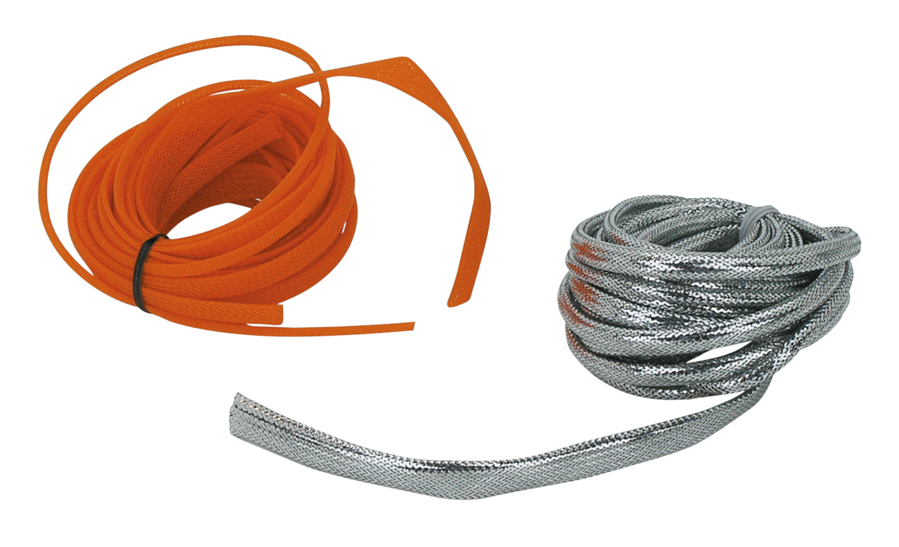 Accel ha progettato questi kit di guaine per proteggere e abbellire cavi, tubi e fili elettrici racchiudendoli in un involucro per un aspetto pulito e abbinamento di colore a voi preferito. Le guaine resistono a temperatura (da -40 a +200 gradi F), olio e benzina e proteggono dalle abrasioni. Semplici da tagliare in lunghezza con le forbici o con un taglierino caldo e tenute sono tenute in sede con una terminazione di guaina termorestringente. Ogni kit contiene 10 Ft (3 metri) di guaina da 1/4″ (6mm), 10 Ft (3 metri) di guaina da 3/8″ (9.5mm) e 5 Ft (1.5 metri) di guaina da 1/2″ (12.7mm) tutti completi di terminazioni di guaina termorestringente.