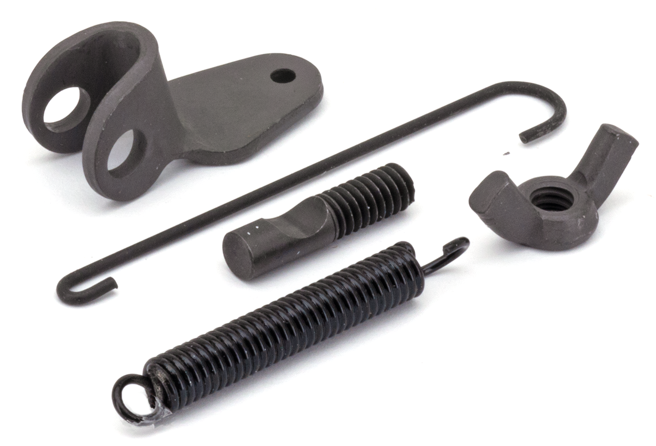 Per Big Twin 1940-1957, Kit con staffa parkerizzata (OEM 2958-35/42280-35), perno e dado ad alette (OEM 2958-35A/42284-35), cavo di trazione (OEM 5088-39/72019-39) e molla (OEM 5084-39/72017-39)