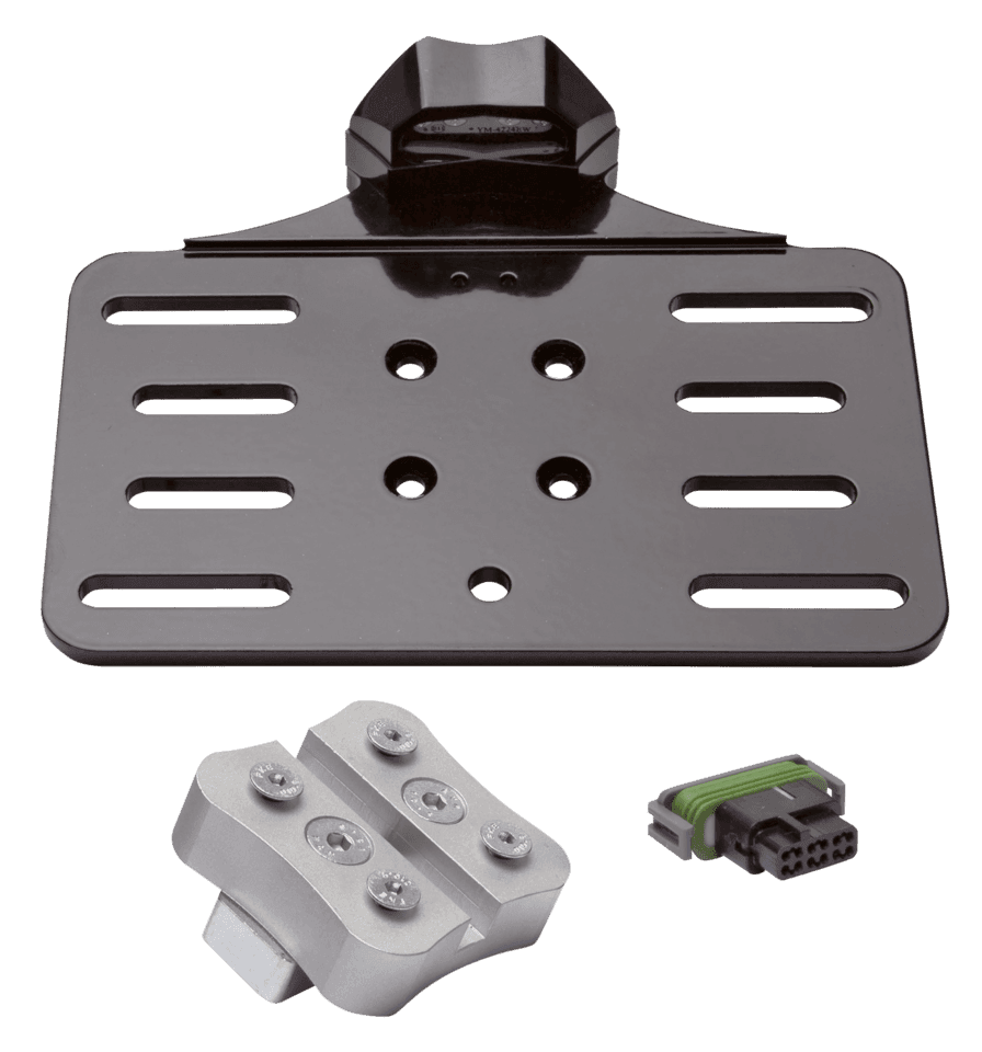Supporto per targa in alluminio ricavato dal pieno con luci LED e luci posteriore/frecce/stop a LED che si adattano ai supporti dell’antenna originale. Viene fornito completo di connettore Plug & Play. Per Touring 2014-2023 (eccetto 2023 CVO).