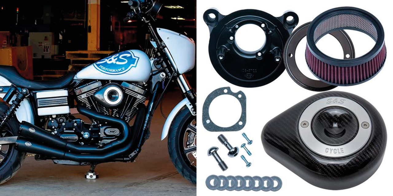 Per Twin Cam 1999-2006 con carburatore Keihin CV di serieAnche per Softail 2001-2014, Dyna 2003-2017 e Touring 2002-2007 con iniezione Delphi e acceleratore a cavo, Kit filtro aria a goccia S&S Stealth in carbonio