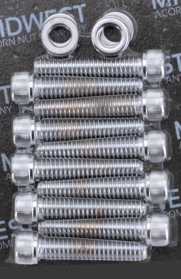 Viti cromate di alta qualità in comodi kit per i coperchi degli ingranaggi a camme. Le teste a brugola sono note anche come viti a testa cilindrica con esagono incassato.
