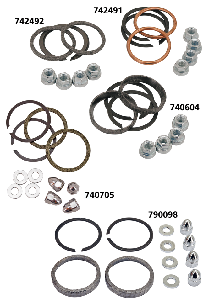 I kit contengono dadi,guarnizioni e anelli di ritenuta degli scarichi. Per tutti Buell ad aria, Evolution Sportster, Evolution Big Twin, Twin Cam, Milwaukee Eight e S&S X-Wedge.