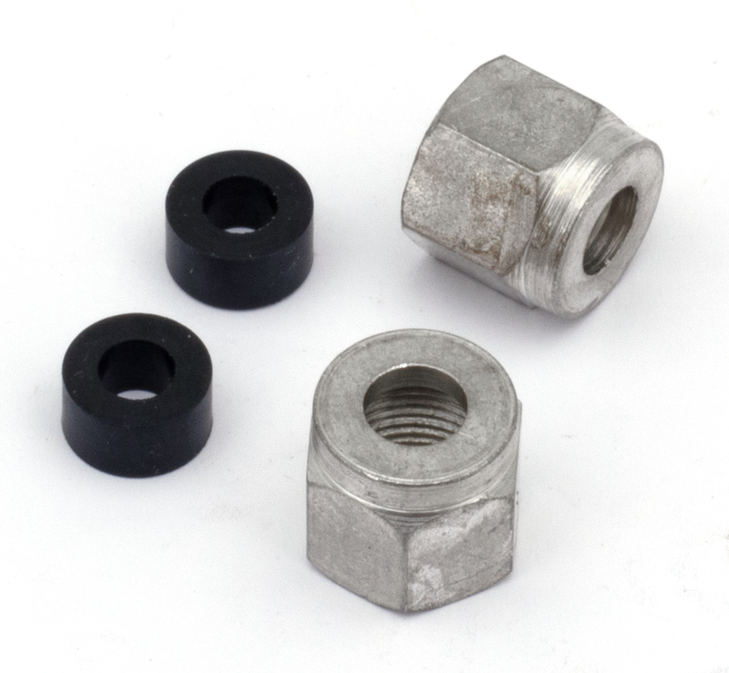 Linee da serbatoio a carburatore per modelli OHV, Dadi placcati bianchi per linee benzina, set di 2 dadi e 2 guarnizioni, Colony (OEM 62360-50 & 62361-51)