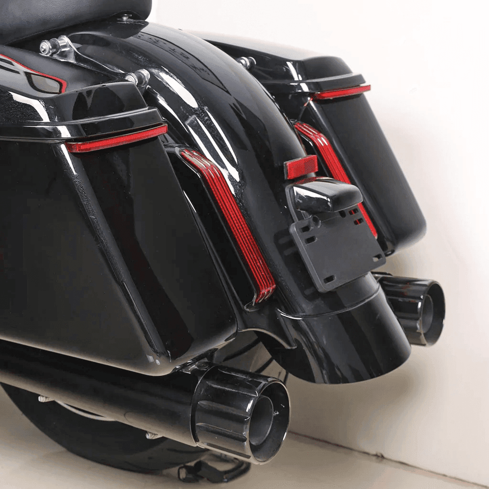 Per Touring 2014-2023 (eccetto 2023 CVO) prodotti per il mercato Europeo (VIN che comincia con 5HD), Luci sequenziali posteriori per borse rigide, lenti rosse