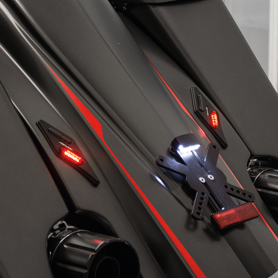 In alluminio billet con lenti affumicate e LED ambra per gli indicatori di direzione e LED rossi per la luce posteriore e del freno. Le luci sono lunghe 138mm e larghe 48mm. Vendute in set di due.