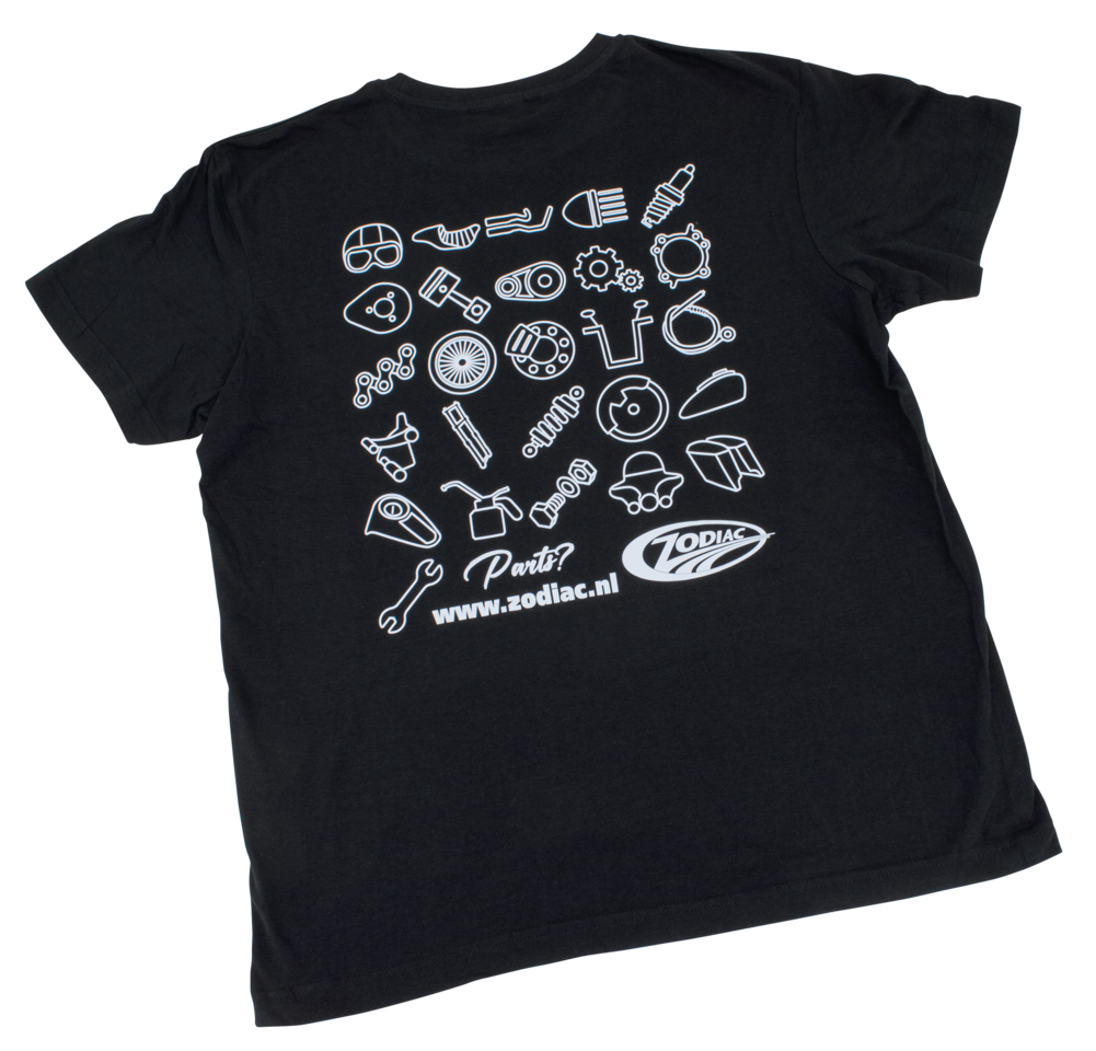 Maglietta nera 100% cotone con stampa bianca. Taglie regolari europee.