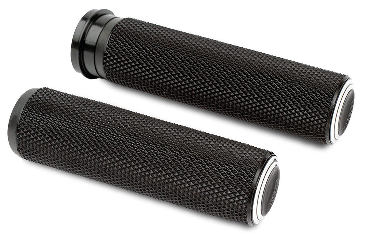 La perfetta fusione di aderenza, stile e comodità. Ogni manopola in gomma possiede un’eccellente aderenza per le vostre mani per un controllo completo della vostra moto. Collari anelli e tappi finali sono in alluminio billet. Tutti i kit includono il manicotto acceleratore installato, colla per le manopole e semplici istruzioni.