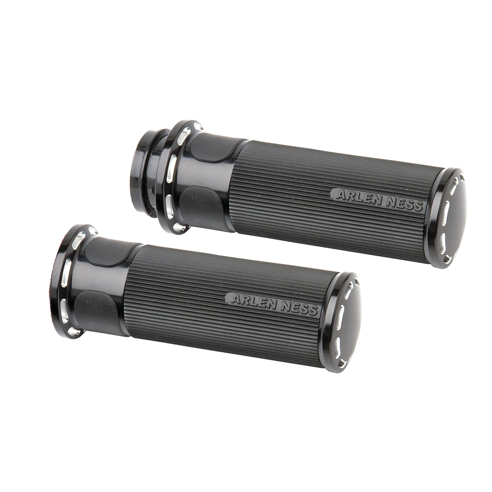 La perfetta fusione di aderenza, stile e comodità. Ogni manopola in gomma possiede un’eccellente aderenza per le vostre mani per un controllo completo della vostra moto. Collari anelli e tappi finali sono in alluminio billet. Tutti i kit includono il manicotto acceleratore installato, colla per le manopole e semplici istruzioni.