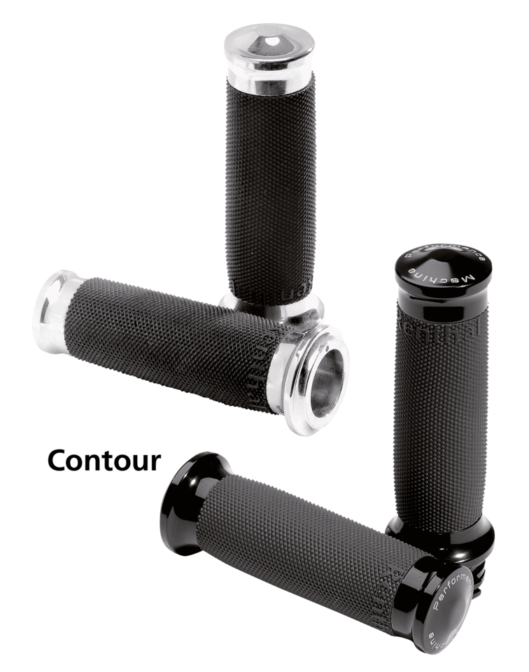Molta gente tende a sottovalutare le manopole che usa sulla propria moto. Ma queste possono catturare gli sguardi soprattutto se sono belle come quelle di Performance Machine. Le striscie in gomma assorbono le vibrazioni del motore ed offrono più aderenza specialmente con cattive condizioni atmosferiche. Si abbinano perfettamente ai comandi manubrio PM Contour che troverete in questo catalogo.