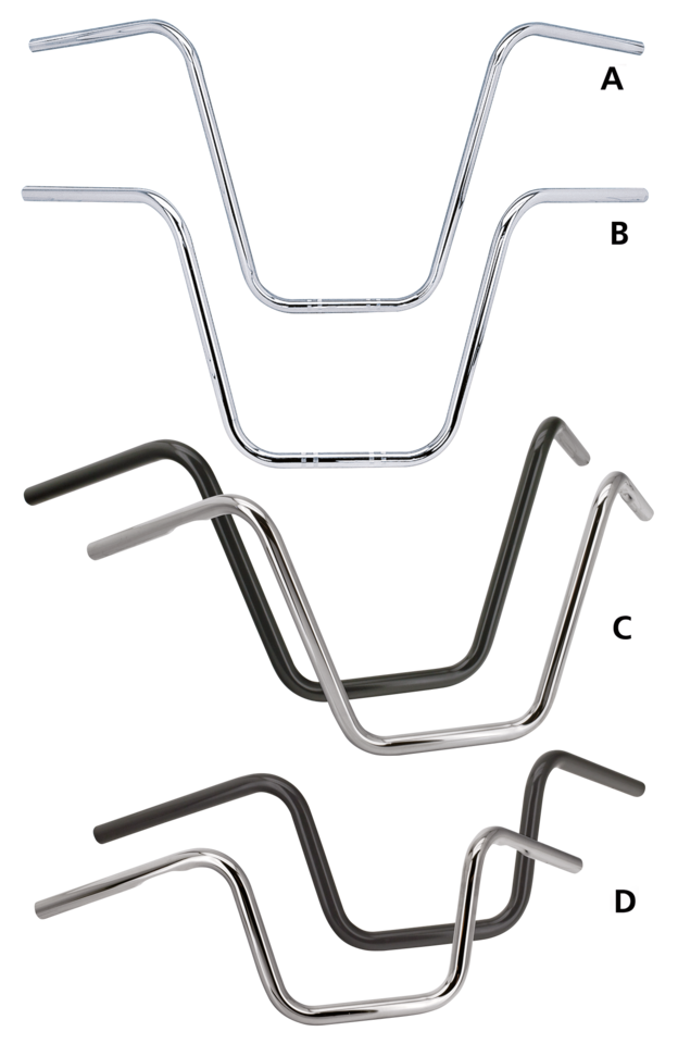 Manubri di alta qualità costruiti in Olanda con spessi tubi in acciaio rinforzato da 1″ (25.4mm). I manubri scanalati hanno delle fessure per il passaggio dei cavi dei comandi manubrio Harley Davidson. Quelli senza scanalature non hanno questa caratteristica. Tutti i manubri Zodiac Custom Products sono progettati per l’uso con i normali cavi acceleratore, ma possono essere facilmente modificati per l’acceleratore elettronico Throttle-By-Wire.