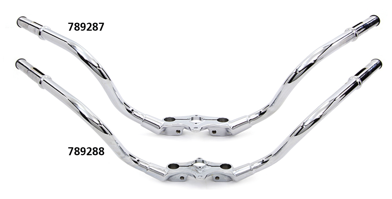 Jack Tracey, da sempre membro e presidente del più antico club motociclistico del mondo, lo Yonkers Motorcycle Club e proprietario della concessionaria Harley-Davidson di Yonkers (NY), chiese a Stelling & Helling di sviluppare manubri più alti di quelli originali “comodi” delle Speedster. S&H ha realizzato questi manubri con i fori per il montaggio del clacson e dell’interruttore dimmer sul lato sinistro e un’area di presa accorciata per l’utilizzo delle spirali corte tipo Hellings. Questi manubri sono realizzate per le forcelle Springer in linea con i fori esterni che misurano 4 3/4″ (120,7 mm) da centro a centro e sono complete di tappi di chiusura parkerizzati. Ordinare separatamente i bulloni di fissaggio e le due spirali corte. Le manopole devono essere tagliate a misura per questa installazione. Le forcelle “in linea” sono state originariamente realizzate per i Big Twin 1936-1940 con canotto del telaio a 28°, Big Twin 1941-1945 con canotto del telaio a 29°, 45CI Solo 1929-1957 e Servi-Car 1937-1957. Le forcelle offset erano di serie sulle Big Twin EL e FL del 1946-1948 con canotto del telaio a 30° e sulla maggior parte dei telai rigidi con canotto a 30°.
