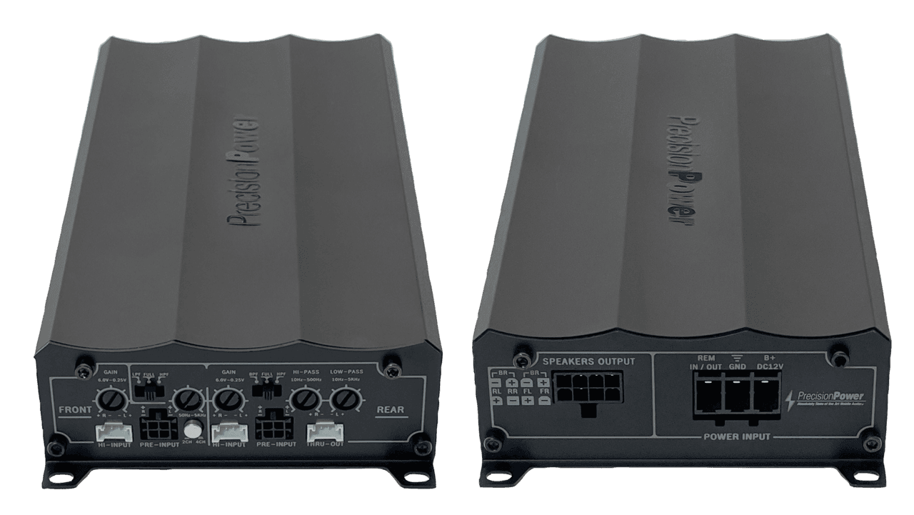 L’amplificatore Atom Mini di Precision Power offre prestazioni in classe D, affidabilità e un ingombro ridotto che si adatta alla carenatura della moto. L’amplificatore misura 9,25″ (23,5cm) di lunghezza, 5,375″ (13,7cm) di larghezza e 1,875″ (4,8cm) di altezza. A prima vista, si notano diversi miglioramenti fondamentali. Tutte le opzioni di preamplificazione e crossover sono comodamente collocate su un lato dell’amplificatore, mentre i connettori a sgancio rapido per l’alimentazione e le uscite dei diffusori si trovano sull’altro lato. Potreste non notare le aggiunte al circuito stampato, tra cui il miglioramento dei componenti interni dell’alimentatore e dello stadio di uscita. Sappiamo che lo volete forte…