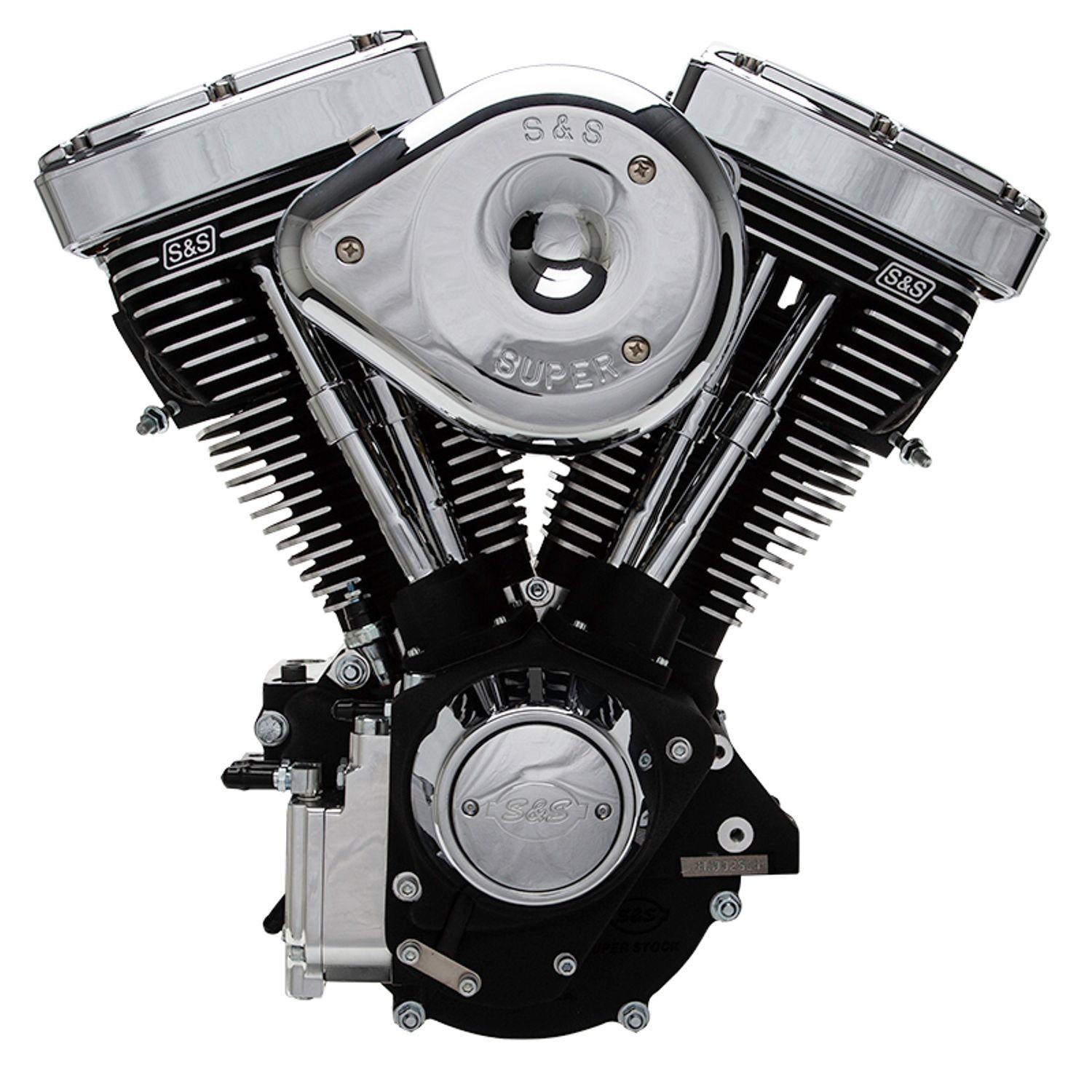 Motore S&S V96R 1575CCAlesaggio 3 5/8″ e corsa 4 5/8″, camme 520 e bilanceri, Nero raggrinzito a coperture bilancieri cromato, Super E Induzione, SuperStock Accensione, Garanzia 2 anni